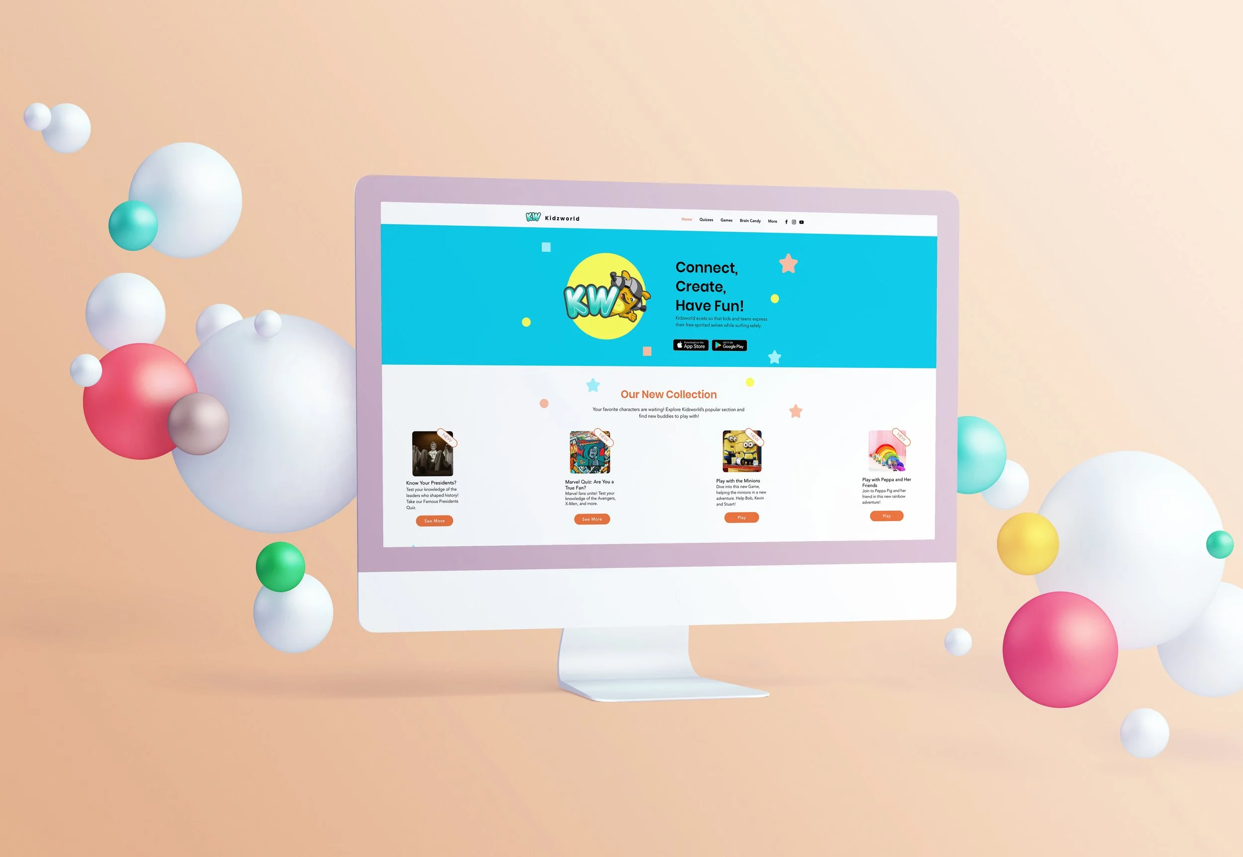 To bring the site to life, I integrated playful shapes and dynamic movement, transforming the static experience into an interactive playground. This sense of motion, paired with a vibrant color palette inspired by the original mascot, creates a fun and welcoming atmosphere that captures a child’s imagination while keeping the brand’s identity intact.